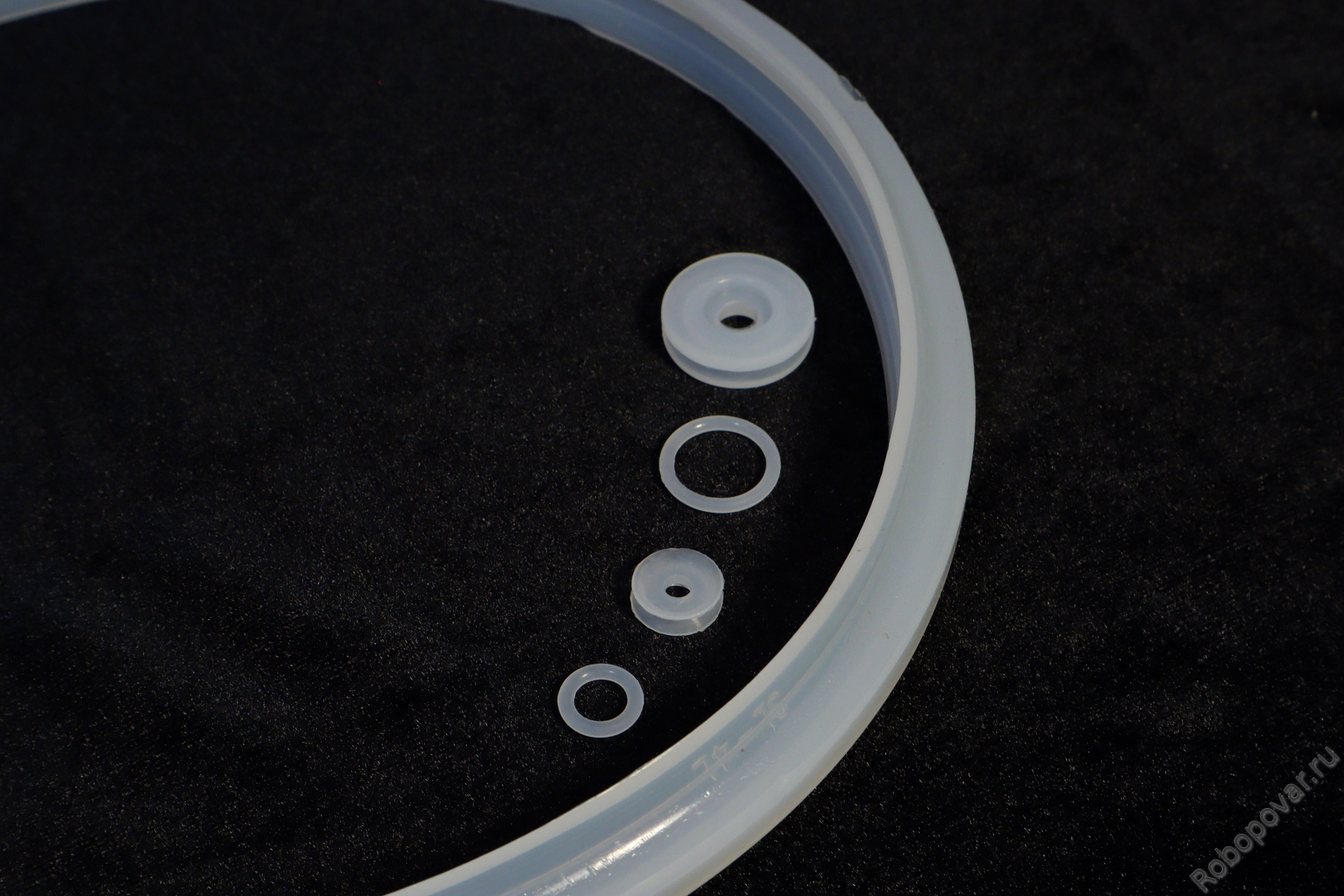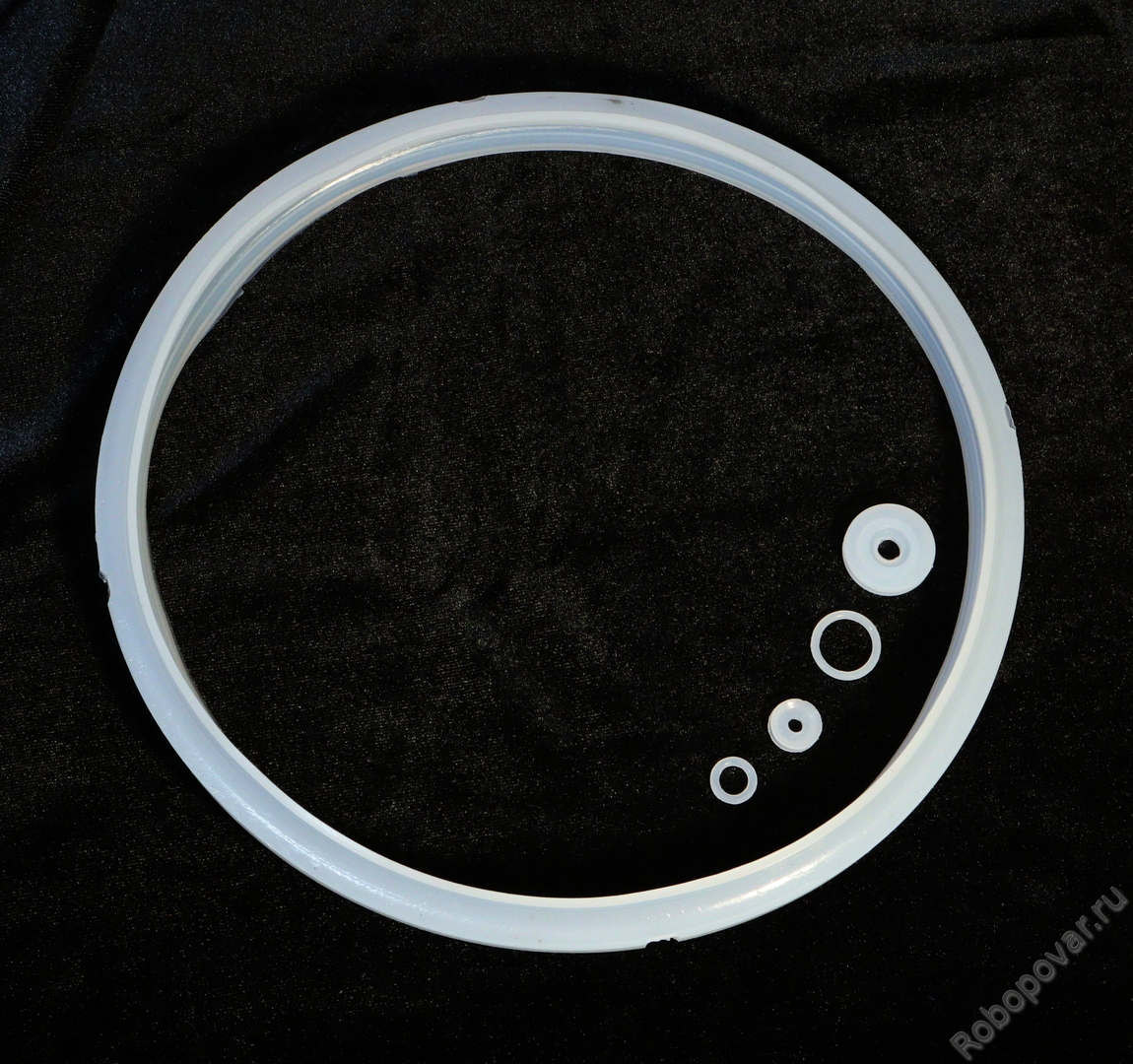 В комплекте идут: большое кольцо для периметра крышки и 4 маленьких кольца - для внутренней уплотнительной крышки скороварки и для клапанов. Кольцо поплавкового клапана не универсальное - подходит не для всех мультиварок-скороварок. Проверяйте своё по внешнему виду - для клапанов-колпачков нужны другие кольца.